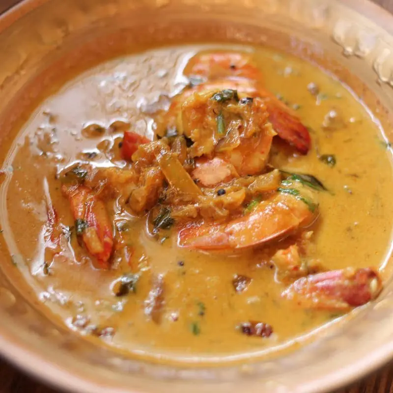 基本のスパイスを使ったエビのカレー。ココナッツミルクが入った、マイルドな味です。レッ…