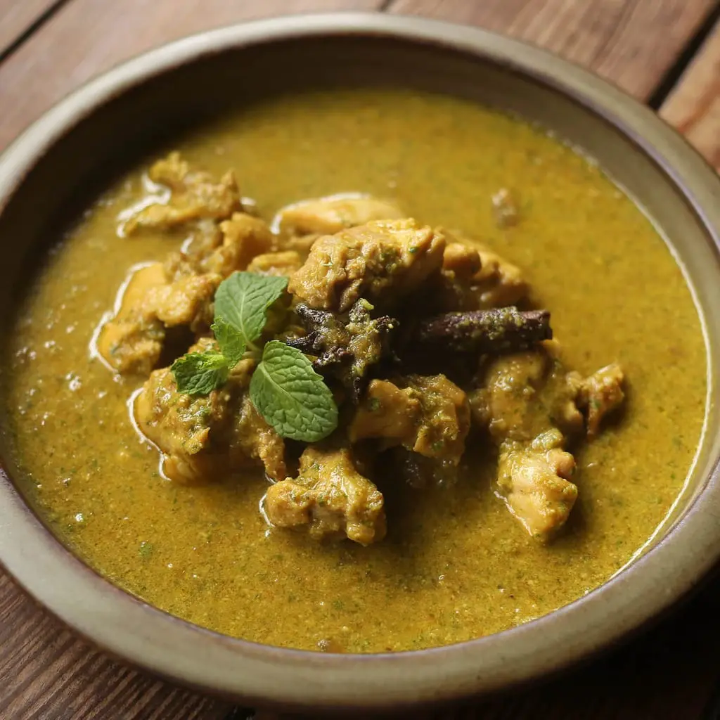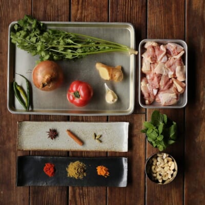 爽やかなミント、カシューナッツの香ばしさが新しいチキンカレー!ホールスパイスで使うスターアニス(八角)やシナモンの深みがより爽やかさを引き立ててくれます。