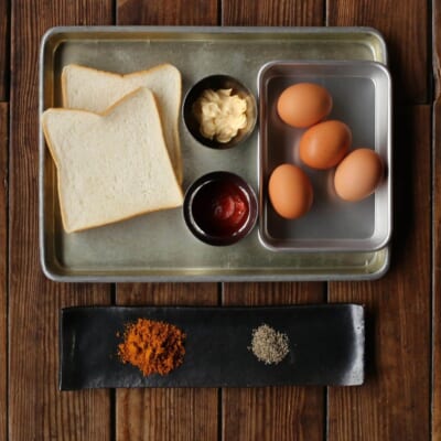 ゆで卵、スパイスA、マヨネーズ、ケチャップを良くまぜる。 |