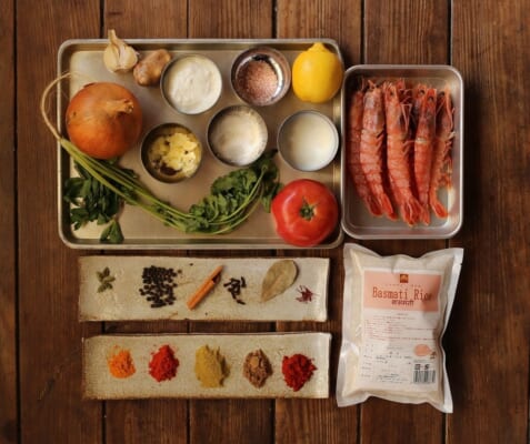 エビの出汁が効いたナイスなビリヤニ。ビリヤニが有名な南インドのハイデラバードでは、出来上がりがマダラ模様になっているのが美しいと言われます。サフランミルクをかける時、出来上がりを混ぜる時など意識して作ってみるとおもしろいかと思います。蓋を閉めたら開けられない。ドキドキとワクワクを楽しめるビリヤニワールドへようこそ。食べる時にレモンを少しかけると美味しいです。