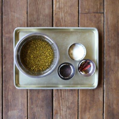 ムングを水に2時間ほどつけて食べられる硬さに茹でておく。 |