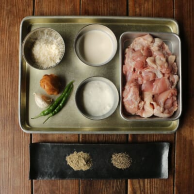 チーズ、クリーム、ヨーグルトというリッチな組み合わせに上品なカルダモンで風味をつけ青唐辛子の爽やかな辛さがアクセントになるチキンです。漬け込んでバーベキューなどに持っていき炭で焼くとなお美味しいです。ぜひ作ってみてください。