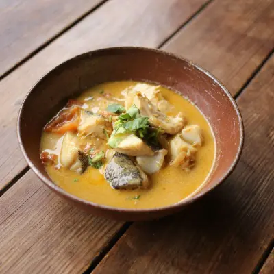 レモンの爽やかさカシューナッツやクリームのこくをスパイスの香ばしさと魚(鯛)の出汁で…