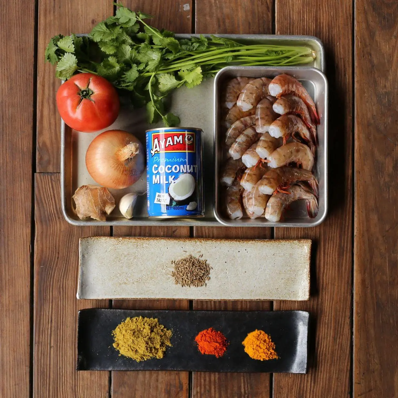 基本のスパイスを使ったエビのカレー。ココナッツミルクが入った、マイルドな味です。レッドペッパーの辛味は個人のお好みで調整してください。エビの下処理をした後に、殻からだしを取ると、カレーに旨みが足されます!ぜひ試してみてください