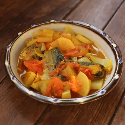 沸騰したらアクを取り除き、トマト、スパイスA、スパイスB、生姜、合わせておいたAを加える。 落し蓋をして弱火で15分ほど煮込み、サバと大根に火が通ったら出来上がり。 |