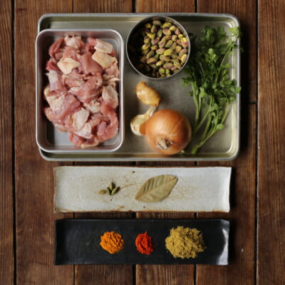 ピスタチオとカルダモンの高貴な感じが合わさり、香り高く、リッチなチキンカレーが完成しました。珍しいカレーであり、喜ばれるカレーです。鮮やかなグリーンが食卓を楽しくしてくれます。
