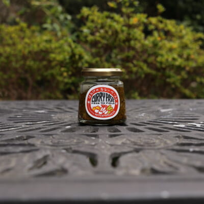 豆8を煮込んでいる間、別のフライパンに「はたけのカレーペースト」を1瓶加え火にかける。 |