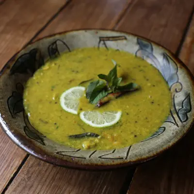 南インドを代表する酸味が効いたスープ。普段は豆をベースにトマトとタマリンドの酸味を活かして作ることが多いですが、今回はミントとライムを効かせて爽やかに仕上げてみました。