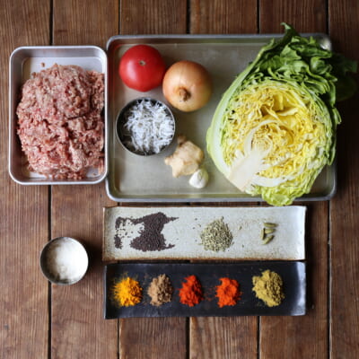 春の美味しいものをぎゅっと入れたキーマカレーを作りたいと思い考えたレシピです。ポイントはココナッツとパウダースパイスを一緒にしっかりと炒めた後ひき肉を炒める。ココナッツの香ばしさとスパイスの辛み、キャベツの甘み、しらすの旨みが一緒になり、この季節ならではの美味しいキーマカレーになっています。