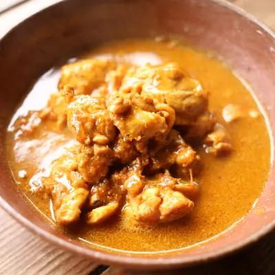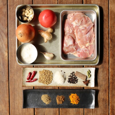 ローストしたスパイスの香ばしさを活かして作るカレーです。屋台でも定番のブナチキンをカレーにしてみました。