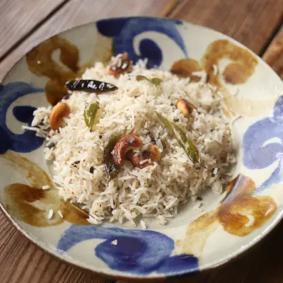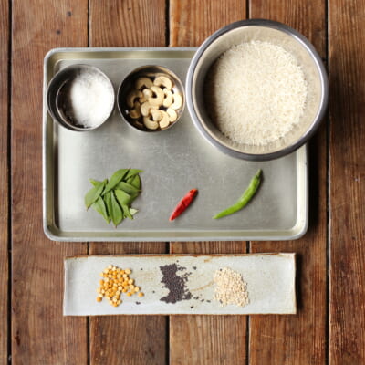南インドのココナッツ風味が効いた定番の炒めご飯です。ココナッツの甘い香ばしさとスパイスの辛み、カシューナッツの香ばしさが美味しい一品です。そのままでももちろん美味しいですし、ポークカレーや、魚のソテーなどと合わせると相性抜群です。 本場の味という意味ではバスマティライスなどの長粒種のお米で作るのが一番ですが、日本のお米で作りたい場合は、冷ましたご飯を使って作るとパラパラに仕上がります。