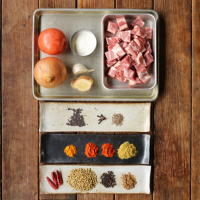 暑い時に食べたくなるような、スパイスの香ばしさと辛味があるポークカレーをイメージしてレシピ化しました。辛味が強いので、ぜひヒーヒー言いながら楽しんでください。 このレシピはローストしたスパイスがポイントです。スパイスはローストすると香ばしくなり、深みが増します。いつものようなスパイスのフレッシュな香りを生かしたレシピも良いですが、今回のレシピはコクのある大人の味付けになっています。