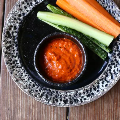 シンプルなカレーにちょっとしたアクセントを効かせたいと思い考えたレシピです。和の味噌、中東のハリッサ、インドのカシミリチリを融合させてそのままでもカレーにも和食にも合うような味にしました。キュウリやニンジンなどの野菜スティックと一緒に食べても美味しいです。