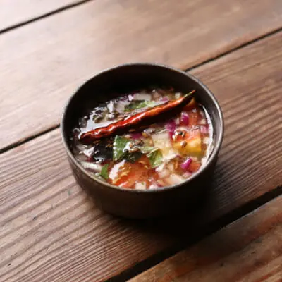 南インドを代表する酸味が効いたスープ。普段は豆をベースにトマトとタマリンドの酸味を活…