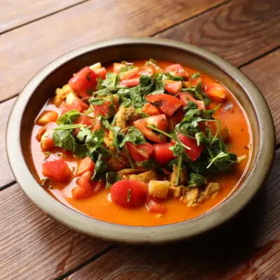 仕上げのソースの材料(トマト、パクチー、ミント、青唐辛子、レモン汁)を混ぜ合わせおく。