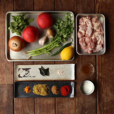 ヨーグルト、トマトを加え表面に油が浮くまで煮込む。