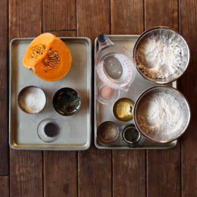 カボチャを茹でてマッシュにしておく。 |