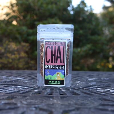 アナンのチャイシリーズは長年人気nがありますが、茶葉とスパイスが程よく混ざったマサラチャイやミントチャイのシリーズとしてカフェインレスのチャイを作りたいと思い、南アフリカ原産のルイボスをベースに生姜をきかせスパイスをブレンドして作りました。チャイにしても爽やかで美味しいのですが水出しやお湯に入れてストレートで飲むのもとても美味しいです。