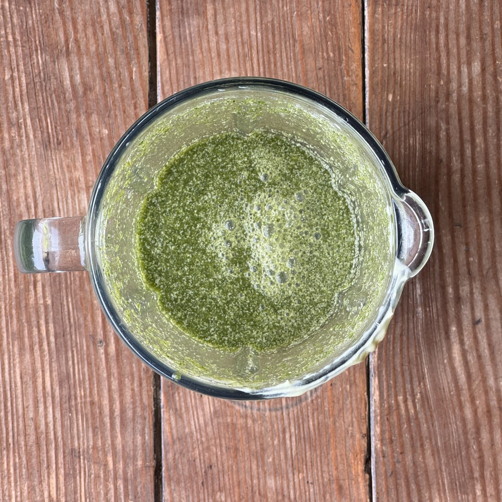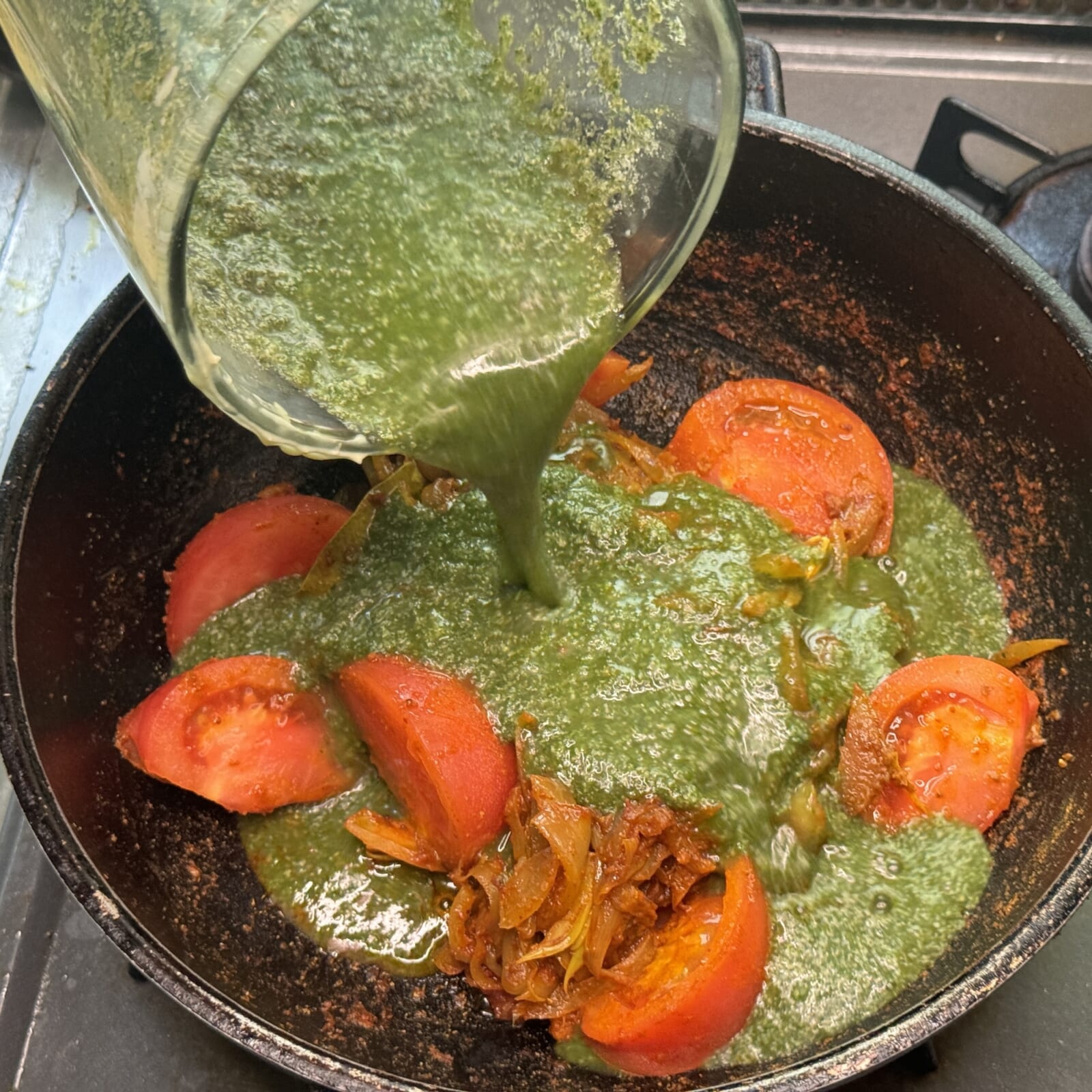 パクチー、ミント、バジルを水と一緒にミキサーにかけておく。 |