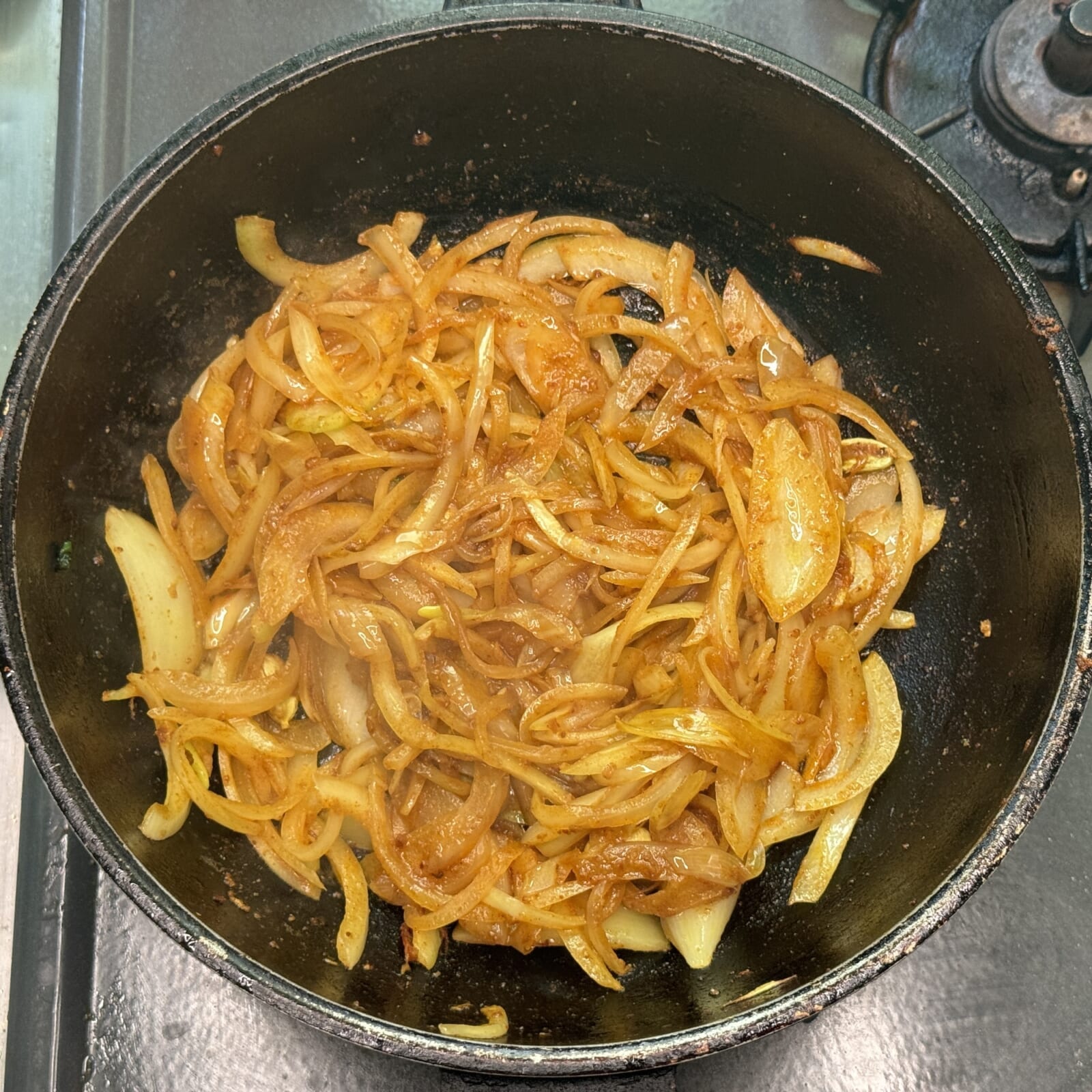 温めたフライパンに油をひき海老を焼き火が通ったら取り出しておく。 同じフライパンにスパイスAを加え香りが立ってきたら玉ねぎを炒め、透明になるまで炒める。 |