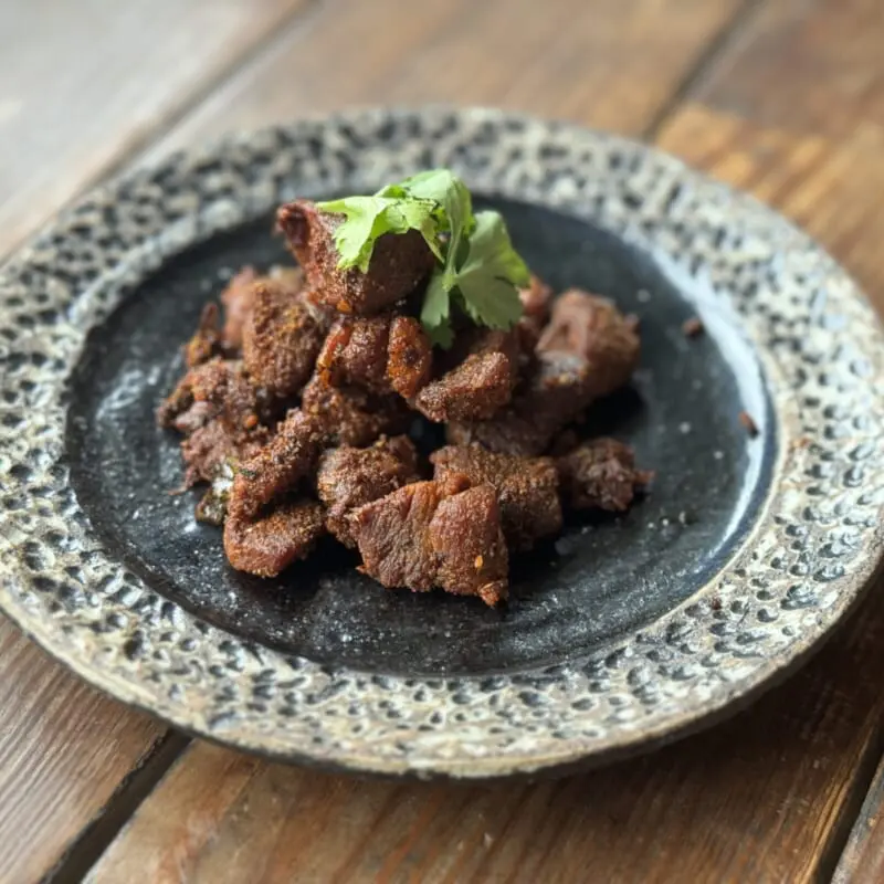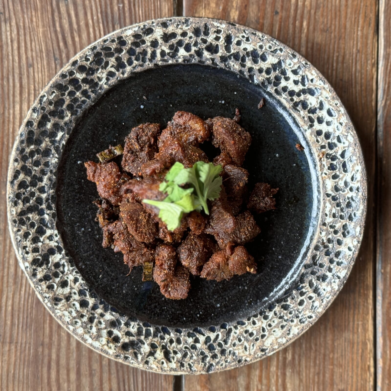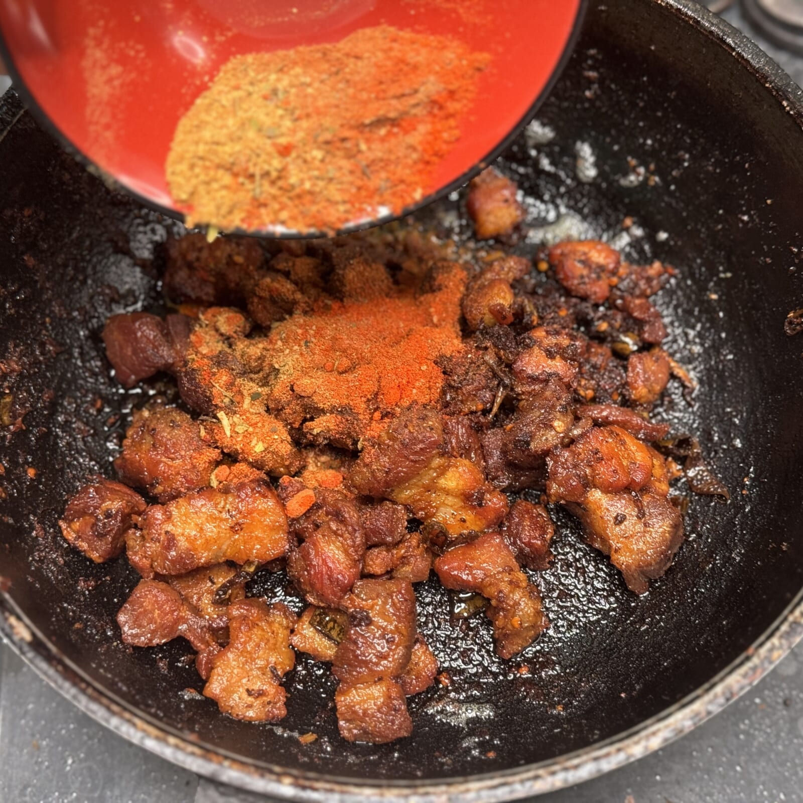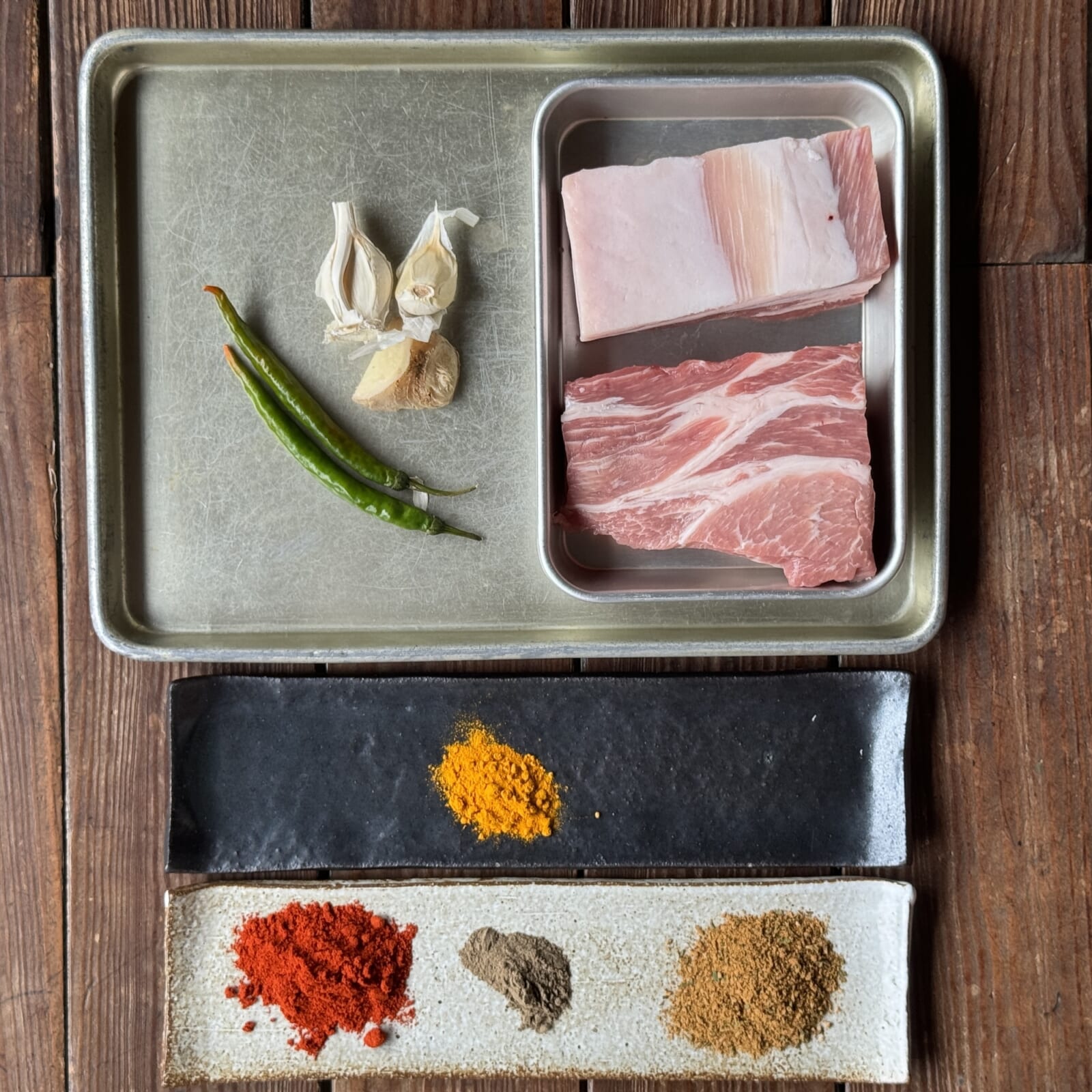 南インドの料理。豚バラ、にんにく生姜の旨みに加えて、チャートマサラの爽やかさを加えたレシピです。ビールにも相性抜群のレシピです。