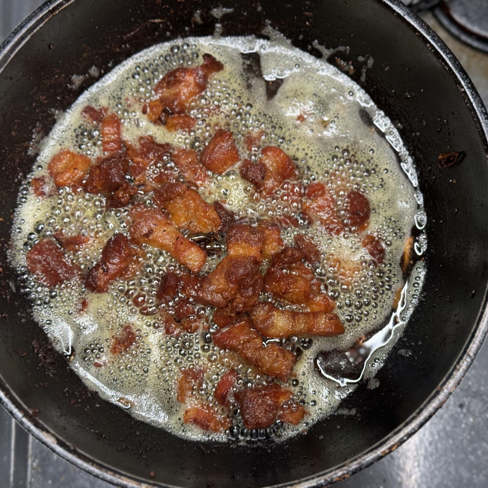 温めたフライパンに油を加えマリネした豚肉を加えしっかりとカリカリになるまで炒める。