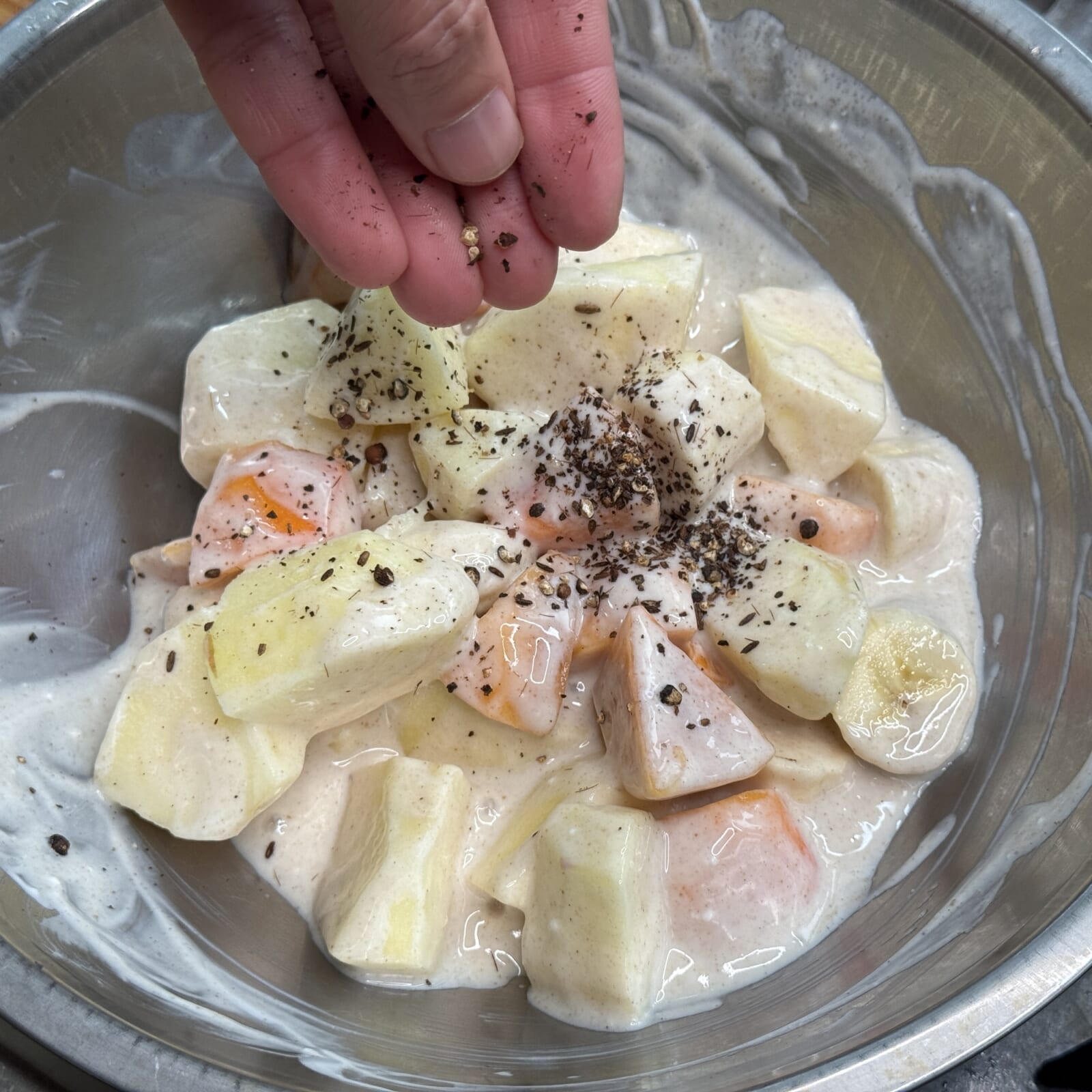 ヨーグルトと合わせて塩をきかせてサラダ風にするものも、砂糖を加えてでザーツ風にするものもいろいろあるがスパイスと食材の組み合わせで何通りも作れるのがライタの魅力でもある。今回はミックスフルーツ、手に入りやすいフルーツを組み合わせてアクセントにガラムマサラと香ばしいクミンなどを加えちょっと大人なフルーツライタにしてみました。