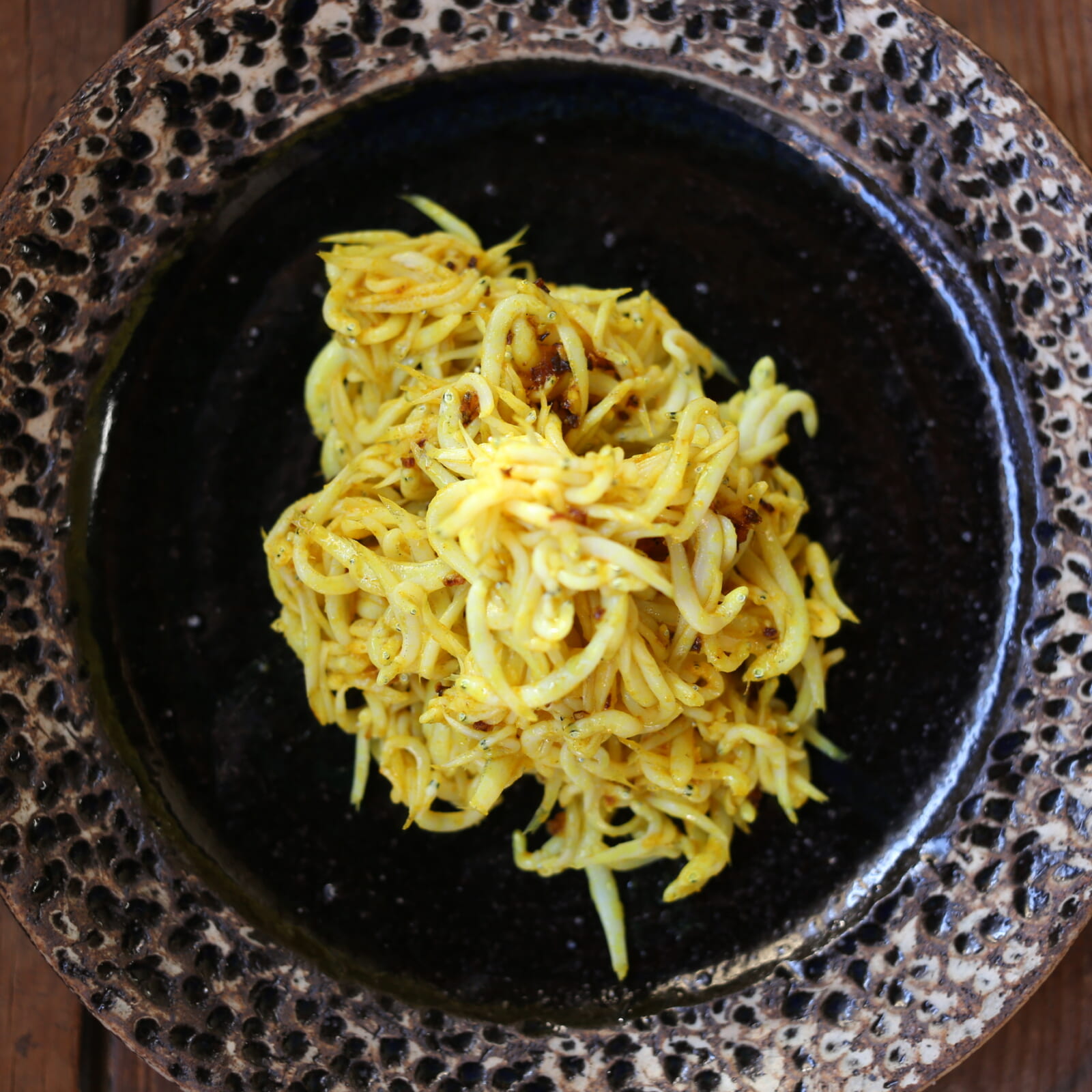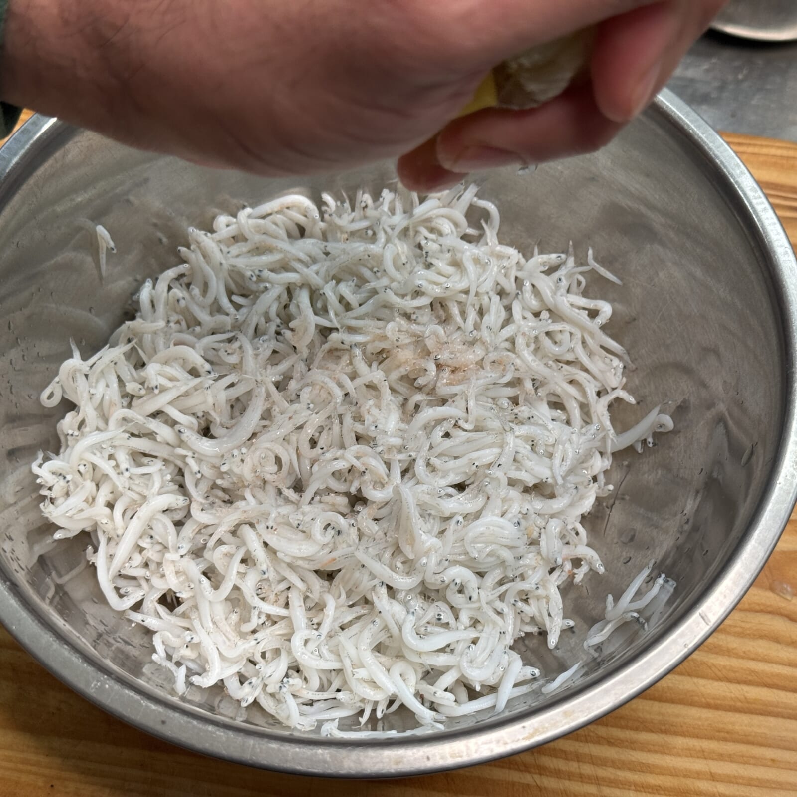 シラスをボウルなどに入れレモン汁、塩で和えておく。 |