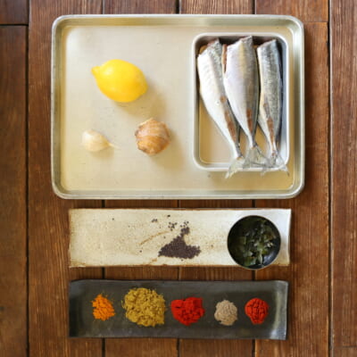 おろしニンニク・生姜、スパイスB、塩、レモン汁をよく混ぜ合わせ、1.の切り身に擦り込むようにマリネしておく。
