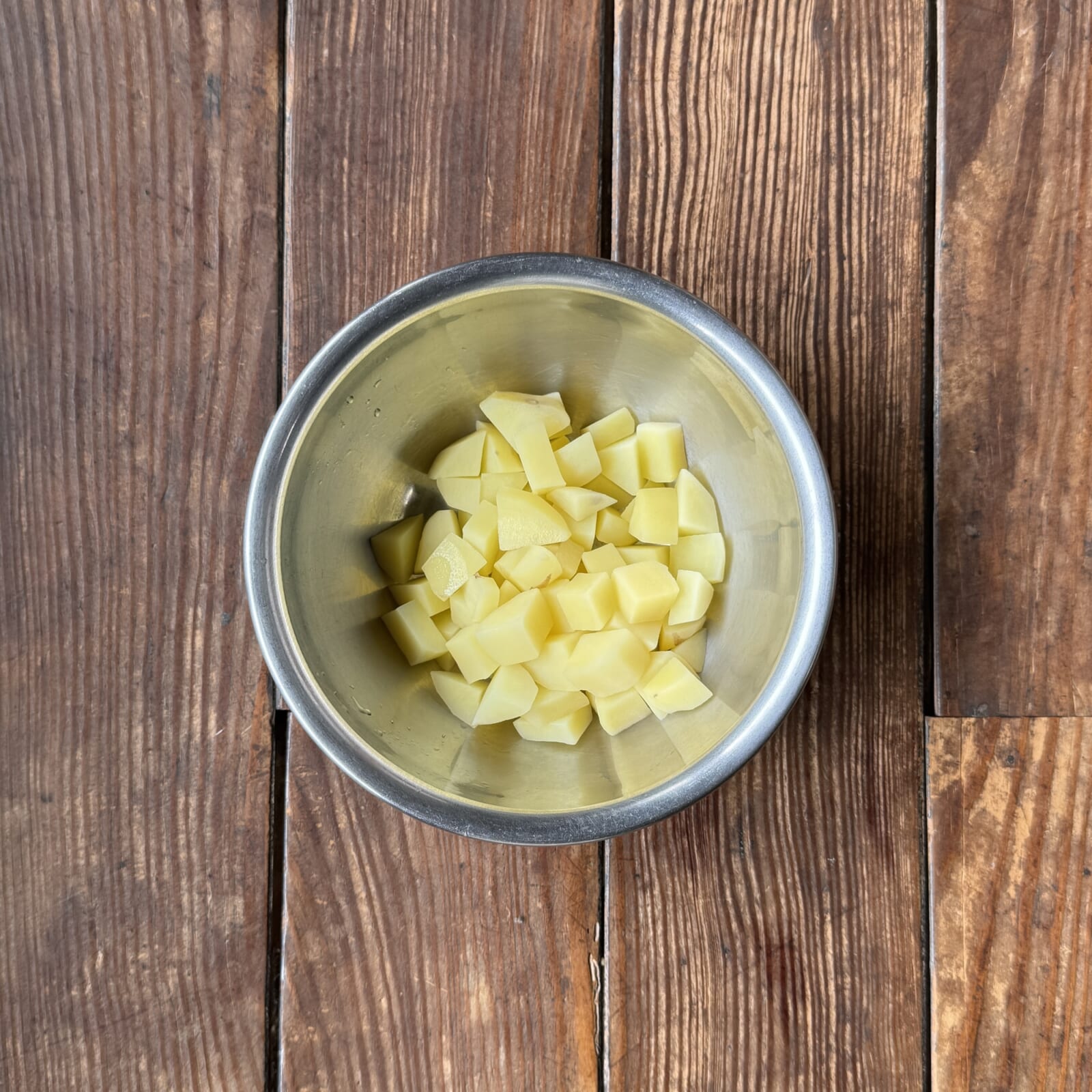 さいの目切りに切ったジャガイモを食べられる硬さまで茹でておく。 |