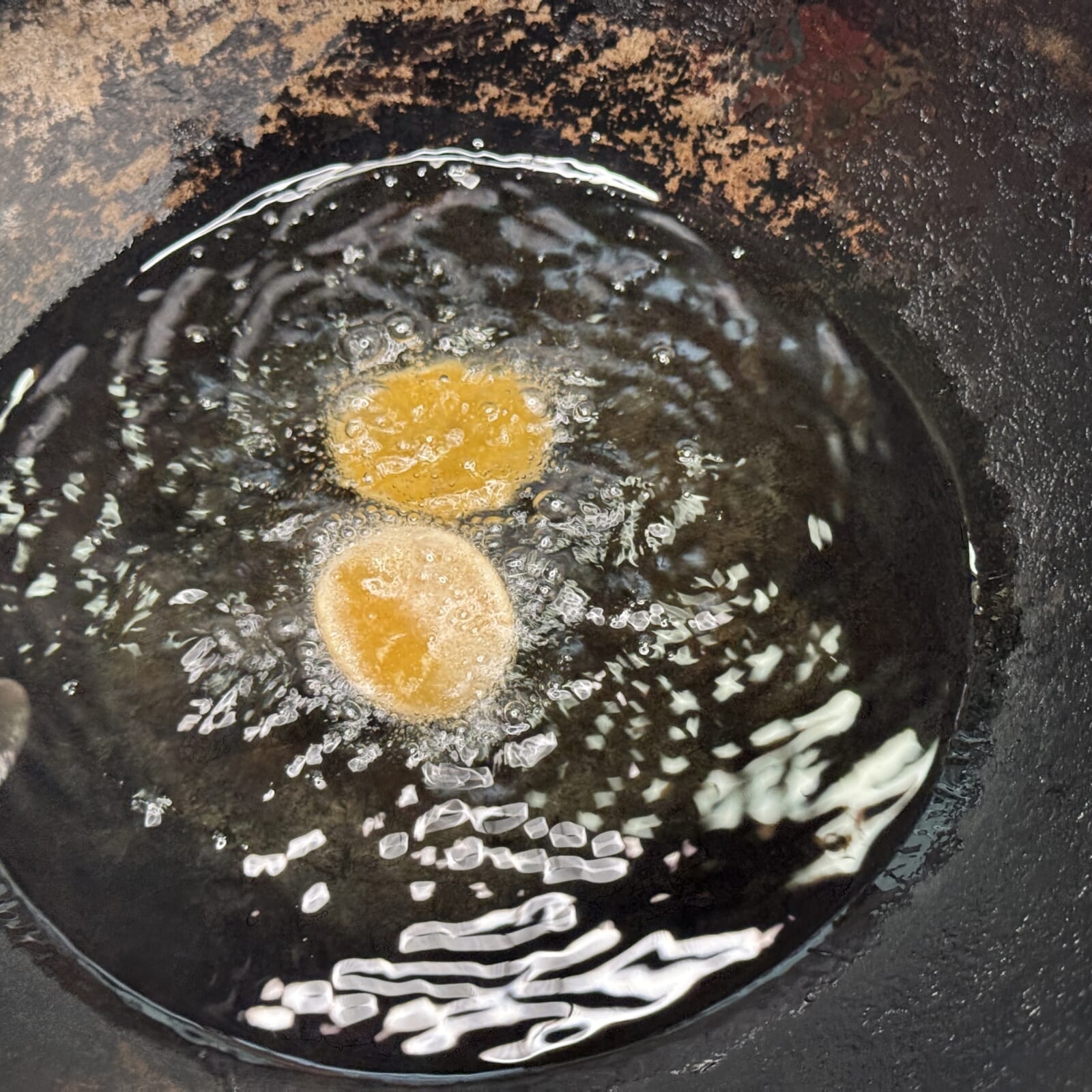 いずれ販売したいパニプリパパド。油の温度は170度ぐらいです。膨らんで回転しない場合はやさしくまわしてあげてください。