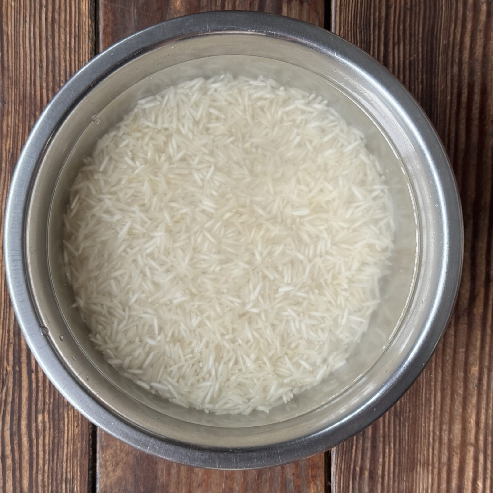 バスマティライスを軽く洗い浸水しておく(水分量外) |