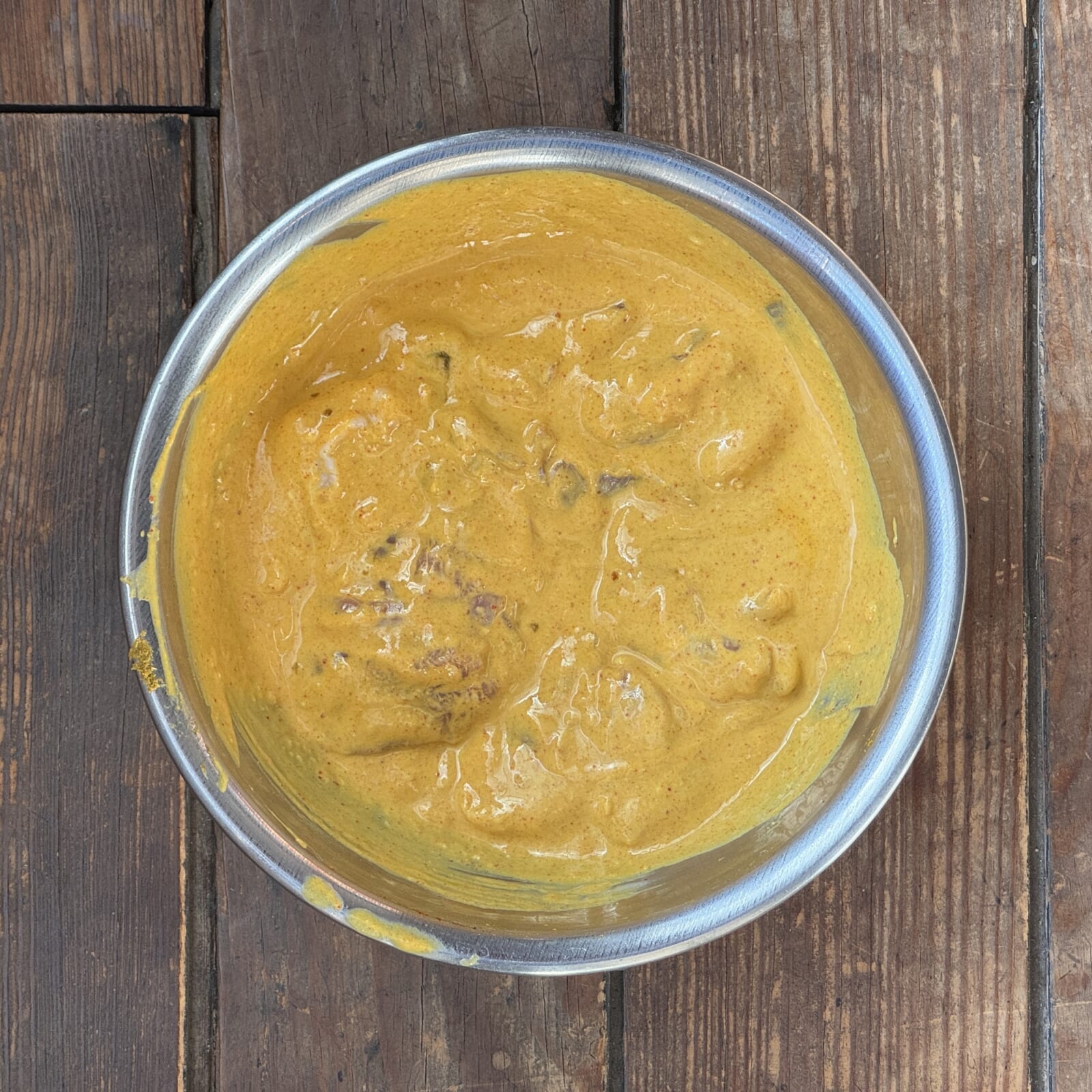 ヨーグルトにニンニク・生姜、スパイスB、塩を加え混ぜ合わせ鶏肉をマリネしておく。 |