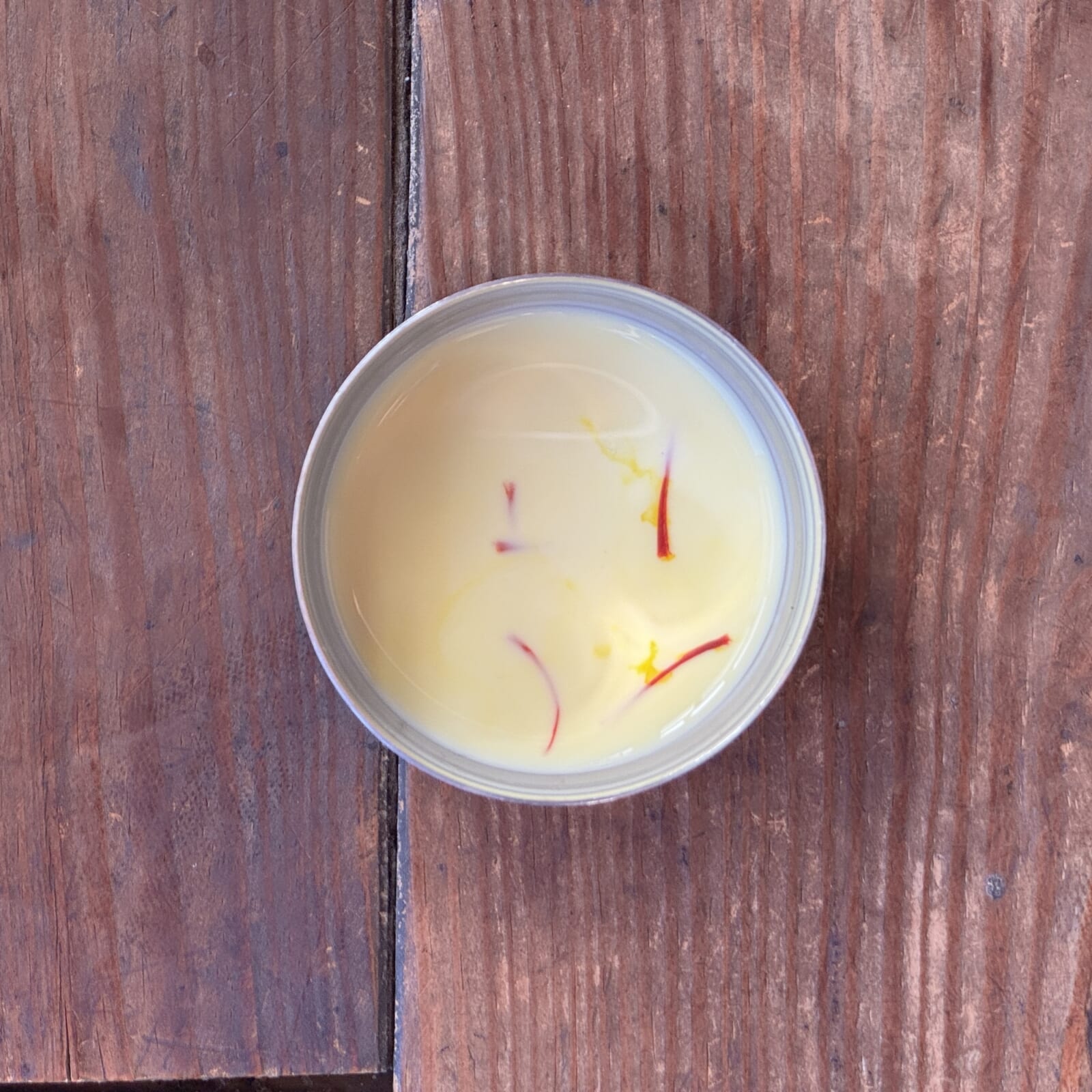 サフランを牛乳に入れサフランミルクを作っておく。 |