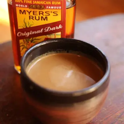 鍋の縁ぎりぎりまで沸騰させ、瞬時にとめるを3回繰り返す。 茶こしでこしてカップに注ぎ分け、最後にダークラムを加える。 |