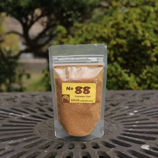 “岩塩にシナモンを中心とした、3種類のスパイスをブレンドしたスパイスです。