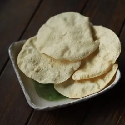 インド料理屋さんやスパイスカレー屋さんに行くとよくカレーやお皿の上に乗っているパリパリしていて美味しいやつ。そのままでももちろん、崩してライスやカレーと混ぜても美味しいしです。ビールなどのおつまみやサラダのトッピングなどにも相性抜群。